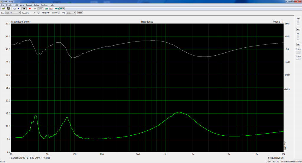 ![]() Amikor teljesen kihagyom a 6R8 ellenállást és a termisztort, akkor kicsit megnő az impedancia. Bal oldalt az eredeti, kicsrélt kondikkal, jobb oldalt a módosított szintén az új kondikkal: A mélyebb régióban van egy kis eltérés a korábban mértekhez képest mert a hangváltó nincs most beleszerelve a hangsugárzóba, ezért egy lyuk van most a helyén. Igaz betömtem egy törölközővel a nyílást de nem az igazi.