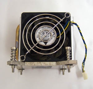A régi fapados P1, P2 gépeken még valóban csak maga az anyag volt a leszorító rugó, az a hűtőbordán átvezetett keskeny acélszalagból kialakított valami, de az egyre nagyobb teljesítmények az egyre növekvő hőjükkel már egyre nagyobb hűtőbordákat igényeltek. És a felfogatás is egyre stabilabb kellett legyen, már csak az önsúly miatt is. Azért van például az, hogy a P4-es prociknál már vagy egy négy ponton az alaplaphoz rögzített rögzítőkeretbe pattintják be rugókkal a bordát ventilátorostul (478), vagy van az a fém-szerelőkeret a bordával és rugós csavarokkal, mint a 775-ösöknél. A képen - én azt gondolom - egy PIP-csöves procihűtő van ventivel, ám a szorítórugók elég jól és kivehetően látszódnak .... |