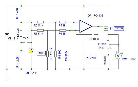 A LM35 sokkal dragabb, viszont nem tud negativ homersekletet merni. A pontossag kb. egyforma. Egyik sem alkalmas 1 C-nel jobb pontossagra, viszont az ismetlesi (hosszuideju) pontossag az olcsonal is megfelelo. A TL431 beallito ellenallasait lehet eleg nagy ertekre valasztani. Pl 4k7 alul, felul. Esetleg lehetne szurni egy 10 µF elkoval. Ne kisebbel, mert szeret gerjedni.