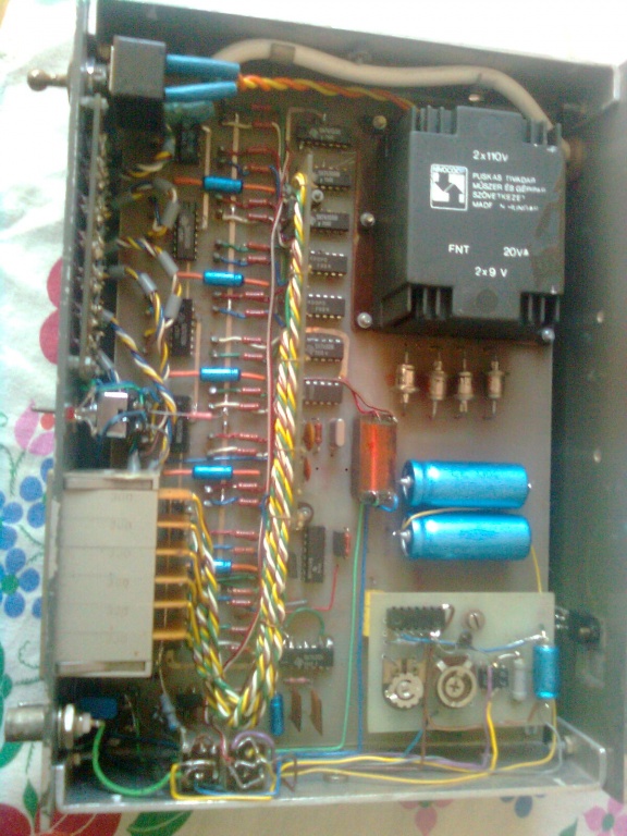 legalábbis a frekvenciagenerátor része... Szkóppal néztem, semmit nem mutat. A kapacitásdekád részét még nem mértem.