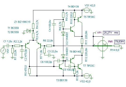 A nyugalmi áram a szimulációban 300mA, D1, D2 helyén lehetne tranzisztoros Iq beállító. R5-öt majd neked kell beállítani 0V kimeneti DC-hez. Biztosítékról és helyi tápszűrésről ne feledkezz meg. A hozzászólás módosítva: Okt 26, 2012