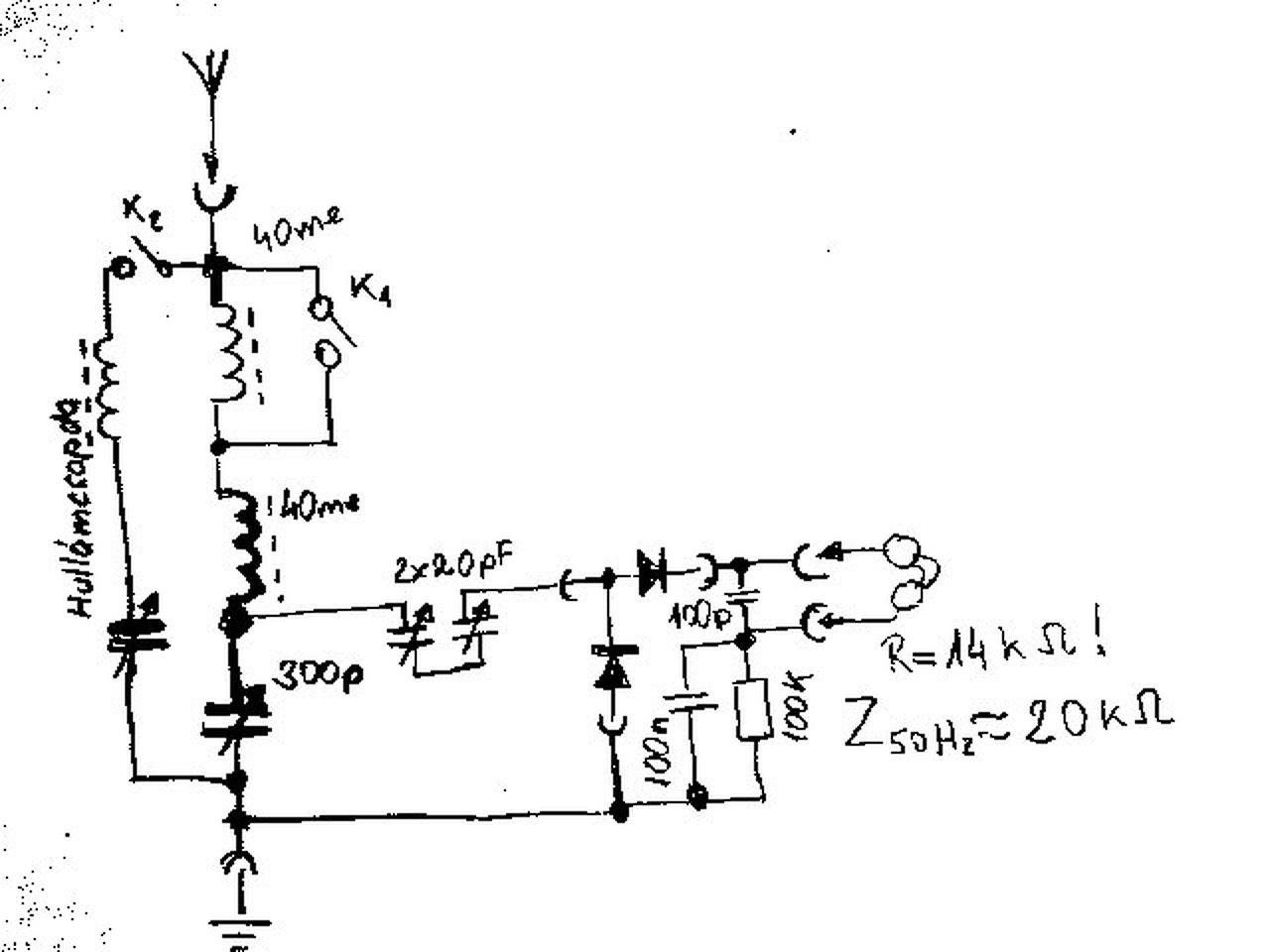 ![]() A 200k-100nF tag felesleges, az RF-áram úgyis a kondin megy át, az ellenállás nem játszik. A hallgató illesztését sosem így oldják meg, hanem ha szükséges, akkor a rezgőkör tekercsét készítik megcsapolva és autotrafós illesztést használnak - vagy antennacsatoló tekercset és akkor "rendes" illesztőtrafós a kivitel. Esetedben persze ez nem működik, mert te soros rezgőkört csináltál és a kondenzátorról veszed a jelet. Miért nem inkább a tekercsről? Akkor lehet megcsapolósat játszani. Szerintem próbáld meg párhuzamos hangolt körrel venni az adókat, akkor a hullámcsapda sem fogja elhangolgatni úgy. Nem véletlen, hogy a rádiókban a párhuzamos kör a hangolóelem.