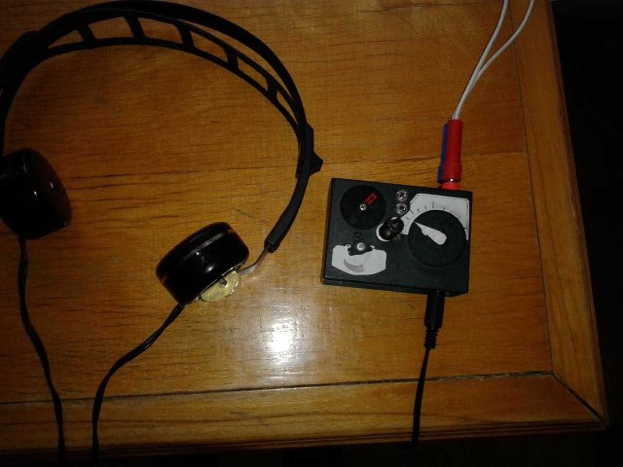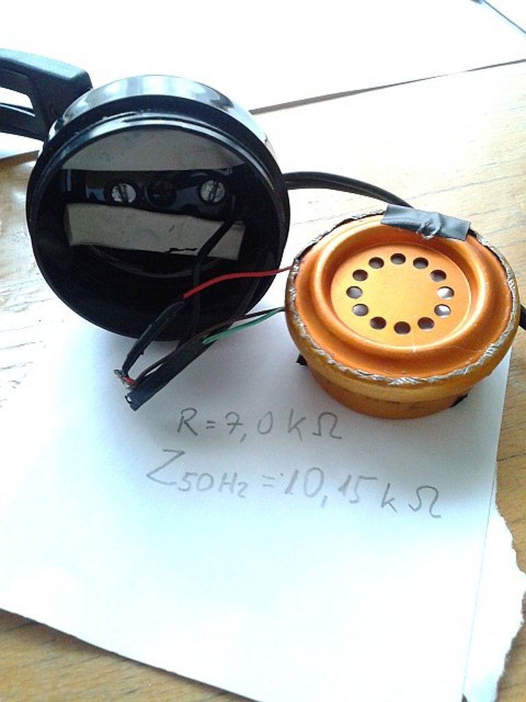 Anno néhány éve olvastam egy cikket, melyben a szerző fényképekkel illusztrálva megénekelte, hogyan tekercselt át egy lengőnyelves hallgatót. Ezen belelkesülve magam is nekiláttam. (lengőnyelves telefonhallgató-betét, satuba fogott amerikáner, mikrosütő óramotorjából kitermelt huzal felhasználásával) Lévén, hogy ezekben elég méretes a csévetest, egy csévetestre sikerült 7 kohm-nyi huzalt feltekerni. (menetszámot nem számoltam, mivel minél több, annál jobb. Hozzávetőlegesen megmértem a betét impedanciáját 50Hz-en, az 10 kohm körül volt, ilyenformán 1000 Hz-en 100 kohm nagyságrendű lehet az impedanciája. Kis tuningot még tettem bele, neodimium mágnesdarabkákkal növeltem a légrésben a térerőt, ami füllel jól érékelhető módon növelte az érzékenységet. Persze a tuningnak határt szabott, az, hogy ha túl nagy volt a térerősség a légrésben, a lengőnyelv odatapadt valamelyik pólushoz.