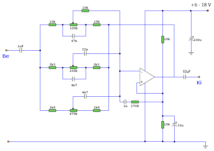 Azért torzít mert IC-s, nem jók ezek az IC-k, az a jó amit az előző oldalon csatoltam, mert abban egy sima hangszínszabályozó van, és a veszteséget a tl071 erősíti fel, és ráadásul 3 sávos (mély,közép,magas).