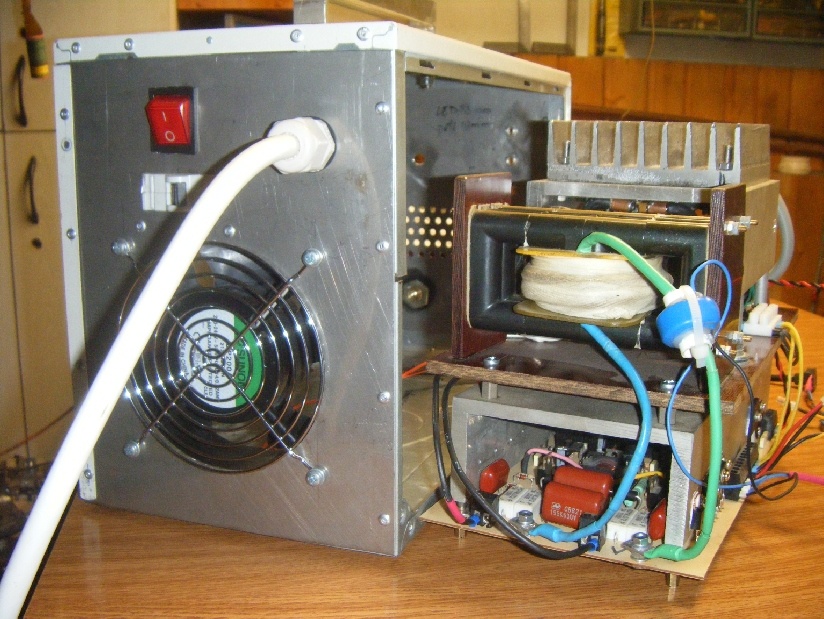 Először is szeretném megköszönni a felajánlást,de megoldódott a dolog.Ma találkoztam pár ismivel és került 3.3.nanós.A beépítésére még nem került sor egyéb elfoglaltságok miatt.A képletben igazad van. Így verem a fejem a falba.Én marha,elsiklottam a zárójel felett.Ezért jöttek ki nekem más értékek.Pedig Nem is vagyok rossz matekból.A gimis fiamnak még tudok segíteni.Na mindegy ez nem az én napom.De hogy pozitívumot is irjak.Összeraktam a gépet.Minden panel a helyén vezetékek elrendezve.Lehet találtok benne hibát de másképp nem tudtam megoldani a dolgokat.Ment a gép kb negyed órát venti nélkül.A vezérlés álltal felvett áramot közvetlen a panel tápszálán mértem.Természetesen fordított polaritással A zénereken 5.54 illetve 5.55 volt a fesz.Érdekes,hogy nekem mindíg magas picit ez az érték.A potit viszont elfelejtettem körbetekergetni.Ez a mérés a minimum állásban történt.Legközelebb körbeforgatom rendesen.A stabkockának tettem egy kis ventit mivel azt nem tudja hűteni a nagy ventim.Már nem is írom,az is fordítva van.A 200 ohm mint írtam most huzalellenállás és melegszik.Olyan jó 40 fokosra saccolom.Az ujjam még épp állta de elég sütős volt.Ezen kívül minden hideg.Néztem az irfd 120-at és az irf540-et is.Hideg mindkettő.És síri csönd van a masinában.Az indulás is rendeltetés szerű.Antistick led kigyullad majd elalszik.A lágyindítás is működik.Bekapcsoláskor világít a hőfokvédelem ledje,majd elalszik és indul a gép kigyullad a zöld led.Szóval eddig úgy tűnik működik.De már nem merek elkiabálni semmit.Átnyálaztam a főtrafó és a folytó valamint a kimenő diódák bekötését.Ott is minden a rajz szerint van.És a mai képek végezetül.