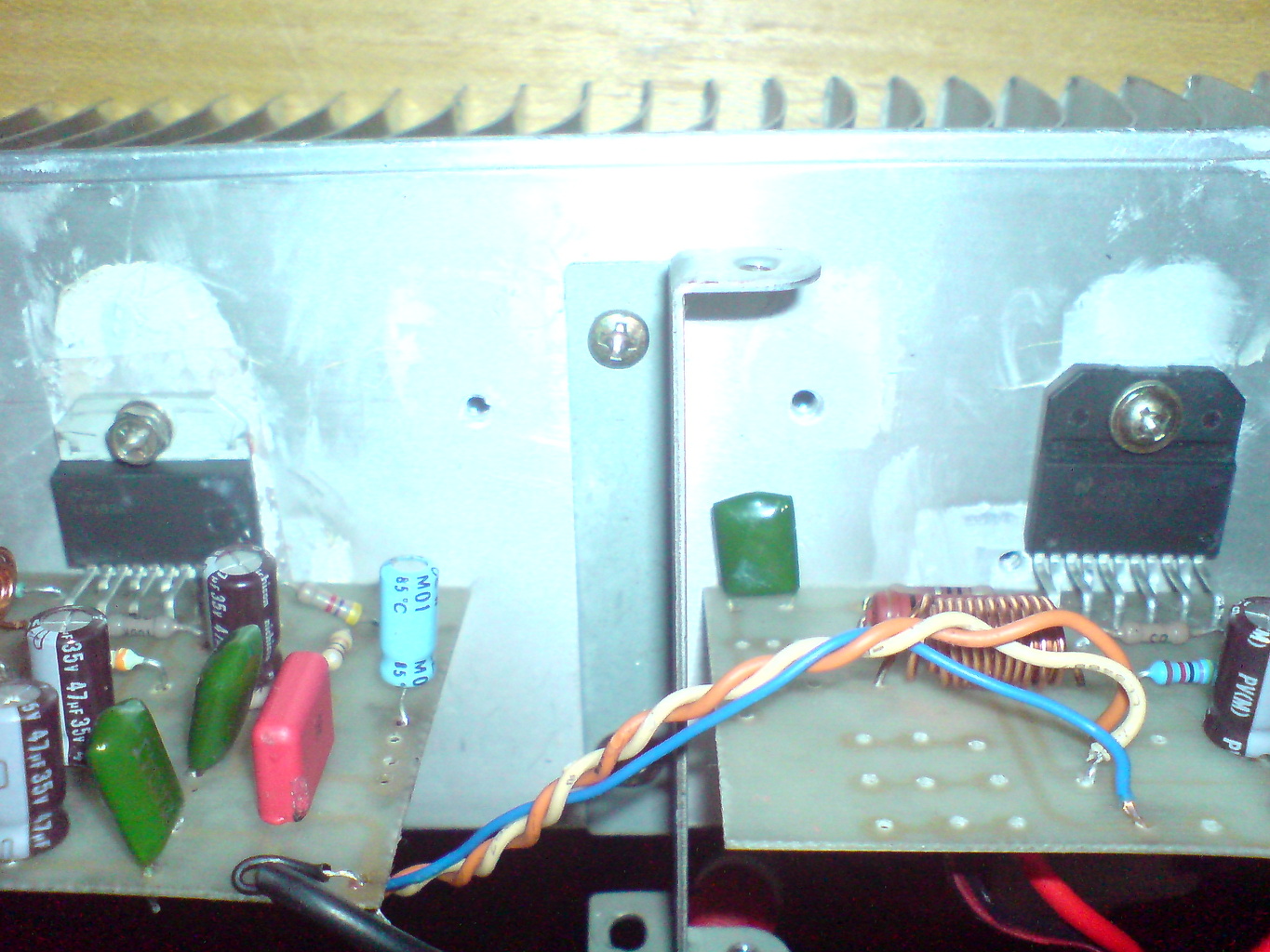 A vezetékek lehetnének kicsit rendezettebb is.Az 2 kondi a trafó tetején?