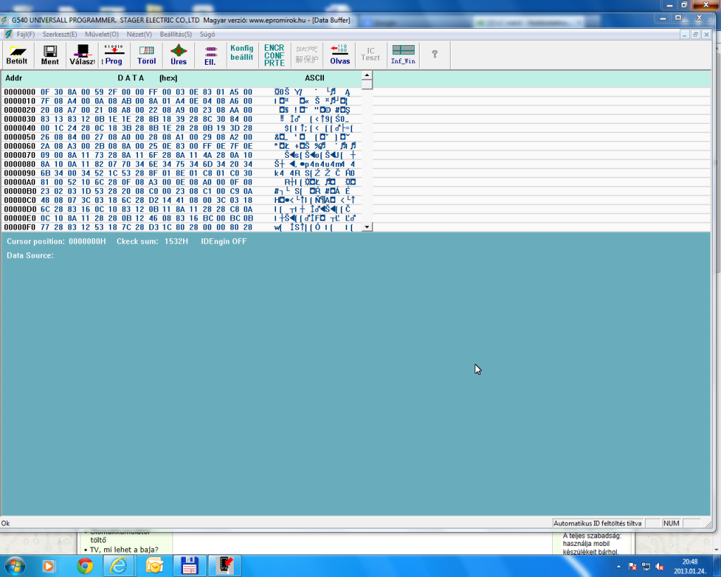 Hát amit beégettél, az egy HEX fájl volt. Szöveges, olvasható, megnyitod egy szövegszerkesztővel.