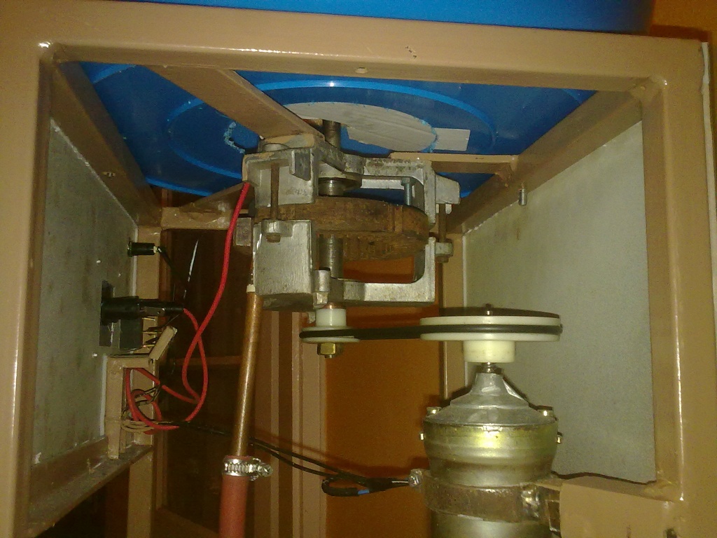 A csapágyház eredetileg egy Hajdú centrifuga motor csak kibelelve hogy a tekercs ne csináljon mágneses teret . A fűtést pedig egy gázlámpa égőfejét le vágtam és hegesztetem rá egy rézcsövet . A hajtás összekötése pedig mtz hüvely gyűrűvel oldottam meg ez egy gumi gyűrű valójában