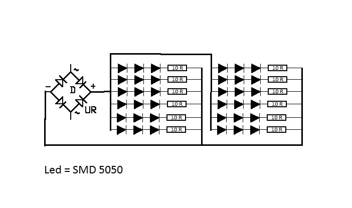 Csak annyi hogy 18 vagy 21 db smd5050-ledet szeretnék 12 voltról működtetni, úgy hogy az egész elején van egy graetz.