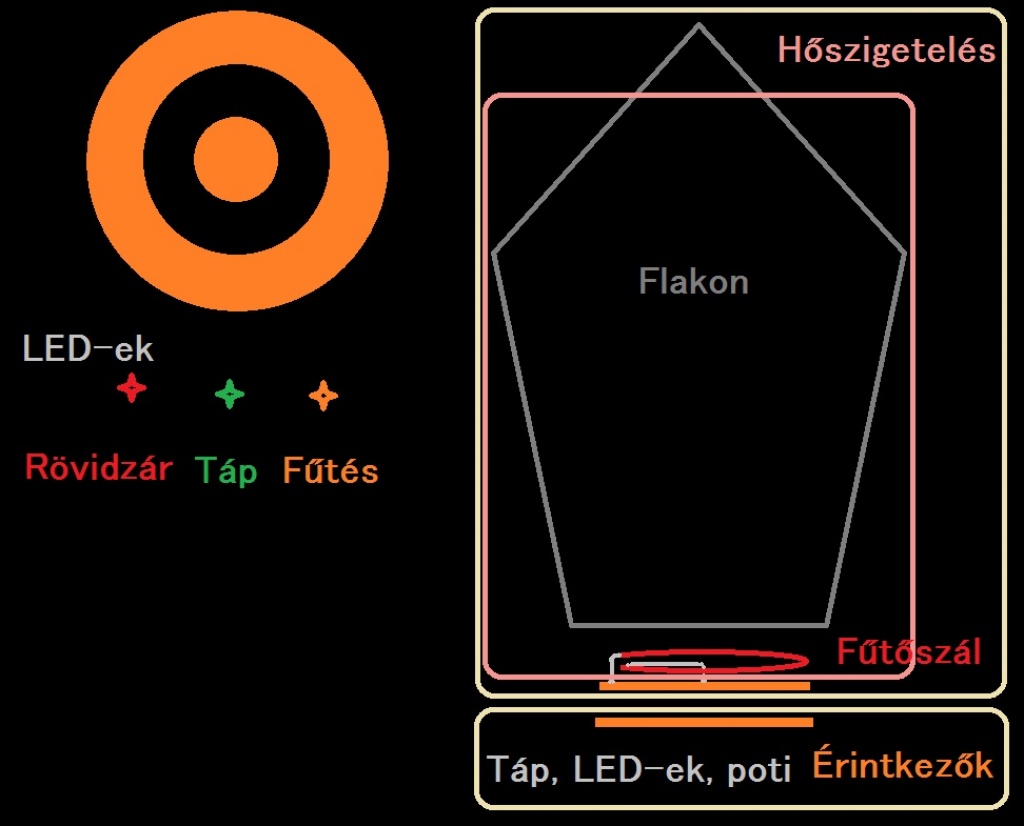 Ekkora teljesítménynél, ilyen megoldásban én lehetőleg nem vacakolnák fűtőszállal. Egy teljesítményranzisztorral könnyen megoldható ekkora teljesítménnyel való fűtés. (Könnyű nekem annyi nagy teljestményű tranzisztorral a fiókban.) Ez energiatakarékosság szempontjából is előnyös, az összes teljesítményt a flakon melegítésére lehet felhasználni.