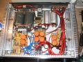 Őszintén szólva nem látszik rajta hogy házi készítés, szerintem kívül belül gyönyörű, tetszik rajta a kidolgozás, látszik a hozzáértés, és a design, a színösszeállítás is tetszik, jó a kábelezés, elrendezés mindazok ellenére, hogy nem új hanem bontott alkatrészeket is tartalmaz javarészt. Külön tetszik, hogy próbanyákon vannak az alkatrészek, de mégis rendezetten. Szóval elismerés és gratuláció!