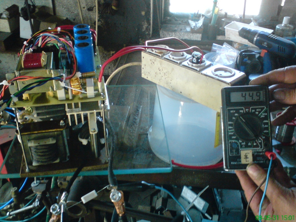 Ennél a hegesztőnél ez kicsit másképp van, mivel csak együtemű. A szekunder feszültség a trafó áttételének megfelelően alakul, kb. 90-95V csúcsban, és ennek a fele az átlaga, vagyis műszerrel 45-50V körül kell mérned.