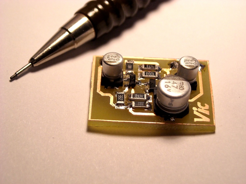 Hát még ha 0603-as vagy 0805-ös ellenállásokat használtál volna, meg kerámia vagy tantálkondikat az elkók helyett...