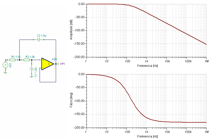 Egy másodfokú aktív aluláteresztő szűrőt szeretnék építeni.