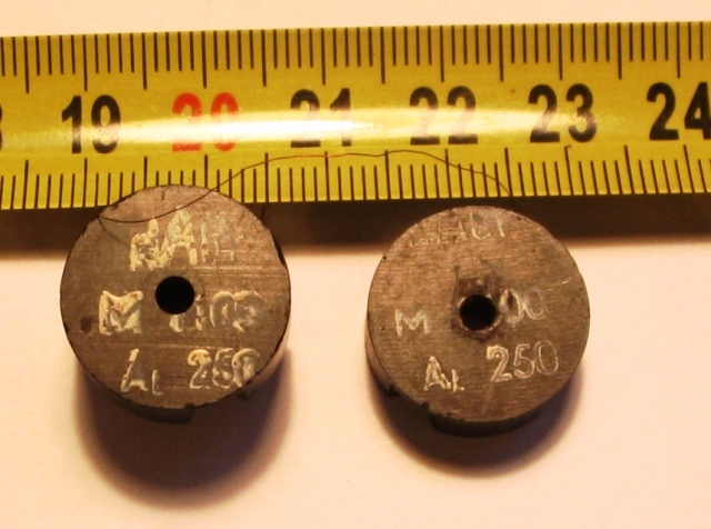 A méreteket feltüntettem. A képen nem látszik, mert lefeledtem róluk, hogy van a nagyobbik maggal megegyező méretű, de AL=250-es ferritem is. Melyik méret a megfelelőbb a műszerbe?