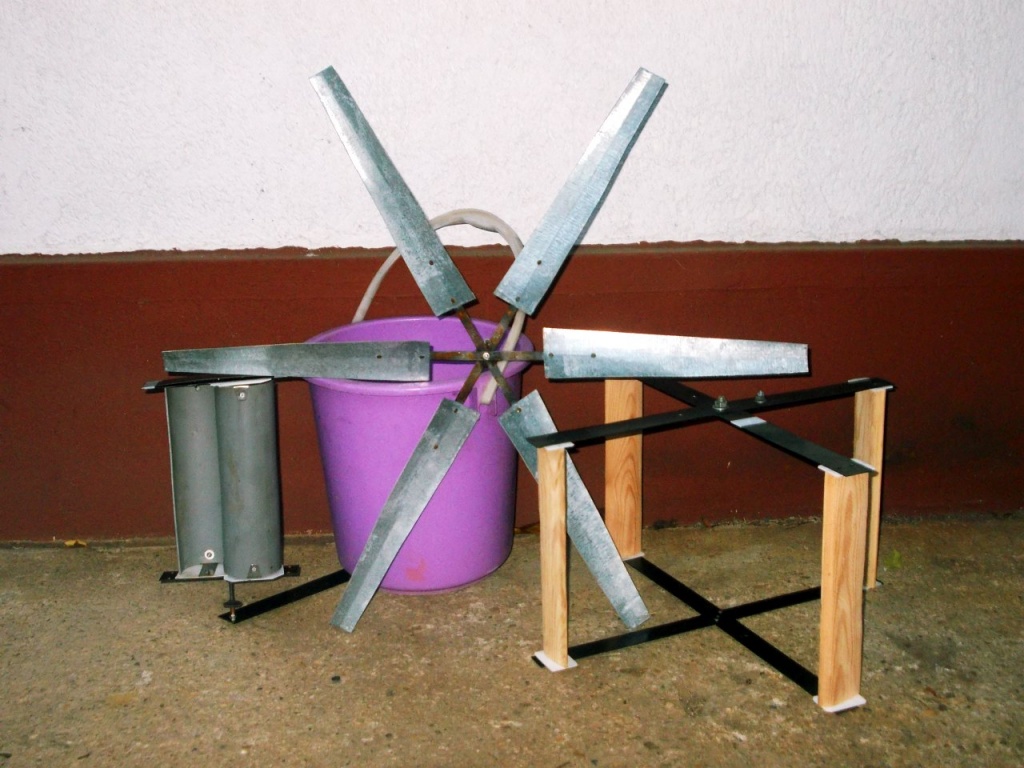 Nem kellett hetekig, hónapokig csiszolgatni, centírozni a lapátokat, kísérletezgetni az elfogadható faroklapát kialakítással, "harangjátékon túltevő" szerkezeteket készíteni a vihar kibillentésre, stb... . Fixen csavarozva, hegesztve minden, két félbevágott hordó, vagy idomvasra szegecselt bádog, egy lépcsős saccra 10-15 szeres áttétel (van indító nyomaték bőven) - vihar legyen a talpán amelyik kárt tehet benne. Kösz a gyors infót.