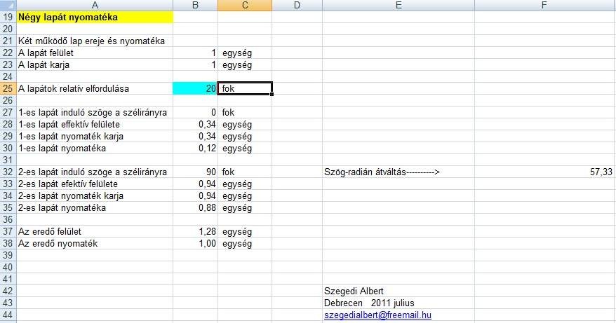 Sajnos mindegyikben van pár tisztázatlan dolog, a Savoniusnál az, hogy a széllel szembe menő szárnyat megkerülő szél mennyire segíti a forgásban a másik oldalt, vagy hogyan lehet elérni a Darrieus felpörgését, a Canstein rotornál mennyire érdemes lecsökkenteni az orrész szélességét. A vízszintes tengelyű elkészítése ezeknél biztosabb eredményt ad. Küldtem Neked egy táblázatot. Csak azt kellene megnézni, hogy mennyire érthető a használata.