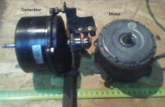Lehartól kaptam két egyforma motort. Az egyiket megtekercseltem generátornak, a másikat meghagytam motornak, csak egy kicsit rendbe tettem. A motorok forgórészének átmérője 82 mm, a lemezcsomag magassága 27 mm. Mellékelek egy táblázatot, amiben néhány mérési eredmény van. Mellékelem a motorok fényképét is. 12 voltos égőket használhattam a tesztelésnél és egy 30 volt, 400 wattos mozigép égőt. Nagyon jó lett volna valami nagyobb feszültségű égő, mint a 12 volt, a 30 voltos égőn kivűl, de ilyen volt.
