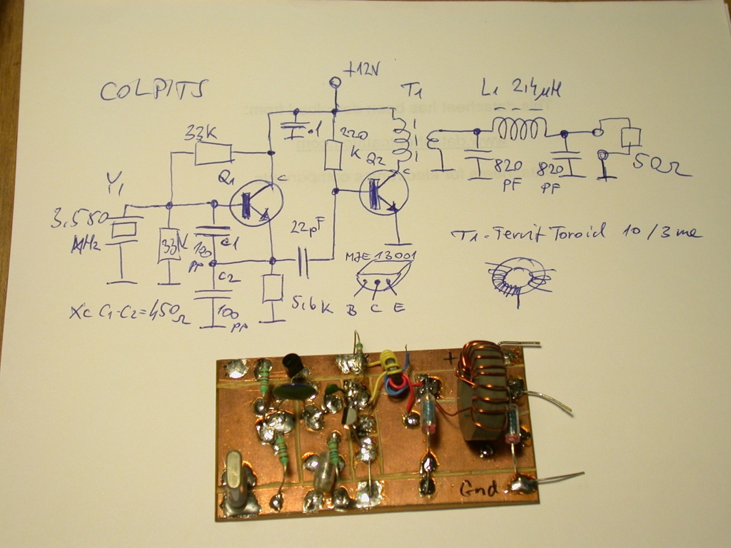 Rumcájsznak válaszolva. Provizórikusan (úgymond öcsi panelra) építettem egy 3554KHz-s Colpitts kristály oszcillátort kiegészítve egy fokozattal ezekkel a tranzisztorokkal és a kis ferrit gyűrűvel. Még oszcillátornak el is ment de a második fokozatba egy BC238A tranzisztor sokkal nagyobbat erősített az-az 30-szor nagyobb jelet produkált míg a 13001-nél 100mV addig a BC238A 3V-ot adott a kimeneten. A kis ferriten eredetileg lévő 10menet 130uH szerepelt kollektor munka ellenállás képen a 3 menetes csatoló pedig a kimeneti alul áteresztő szűrőre csatolta a jelet, ami azonban nagy jóságú hangolt köröknek való toroid gyűrűvel lett építve 80m-re az-az kb. 4MHz levágási frekvenciával. Aránylag szép szinuszos a jel . Végül is a kis toroid nem nagy veszteségű, ugyan ilyeneket alkalmaztam a múltkori kis vevő DBM-jében is. Tehát lehet kísérletezni a takarékos izzó alkatrészeivel.