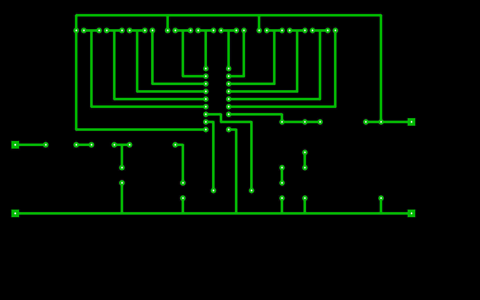 Elkészítettem Az ember méretű kivezérlésjelző nyákrajzát. Átellenőriztem nem is egyszer. Megtenné valaki, hogy Ő is leellenőrzi nekem? Úgy a biztos! És ha Ő sem talált hibát, akkor kezdem el csak megépíteni. Légyszi valaki vegye a fáradtságot kössz mellékelétem kép formátumban, és PCBben elkészült nyákként is. A képnek a fele lemaradt, de az nem baj, mert az utolsó 5 centi folyamatosan ismétlődik..