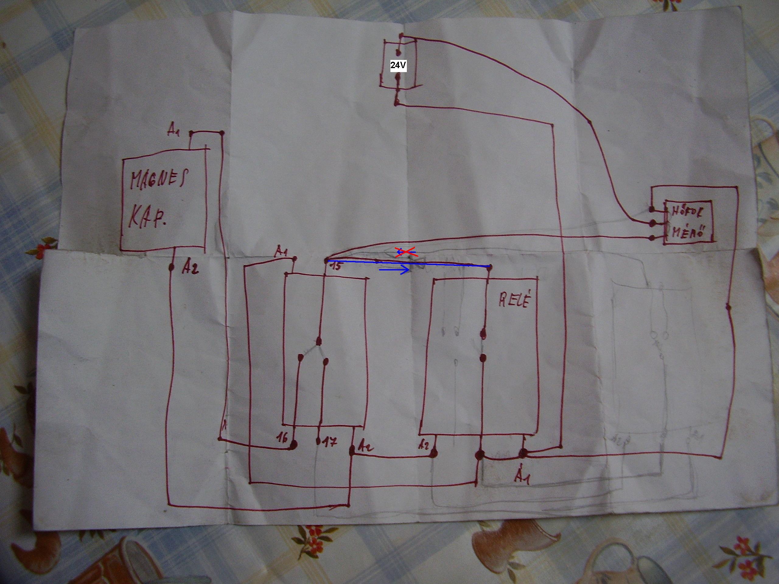A mellékelt képen pontosan látszik hogy mi hova megy. A KÉK vezetéken bevan jelölve hogy merre folyjon az áram iránya(a kék nyíl mutatja), és hogy merre ne folyjon vissza az áram(kék nyíl áthúzva egy nagy piros X-el.) Na oda kelene kitalálni valamit, viszont azt nevegyétek figyelembe ami oda ceruzával van berajzolva, mert az csak prbóálkozás hogy ezt amit mondtam meglehessen csinálni, köszi a segítséget! ÜDv! gabikt