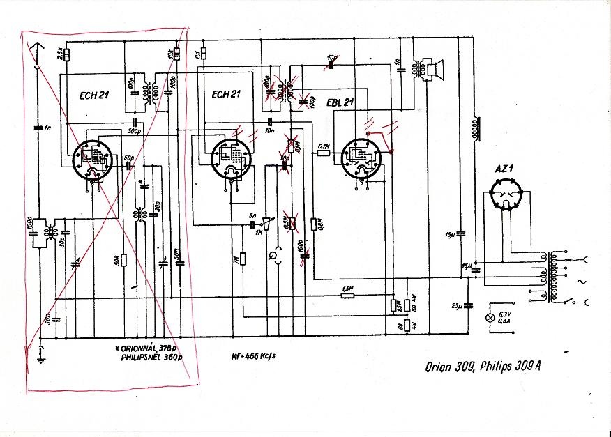 Van egy 1948-as orion 309-es rádióm aminek a rádió része nem működik viszont erősítőként teljesen jól szól.Van egy kicsi brumi amit meg kellene szüntetni de egyébként teljesen jónak mondható.Arra gondoltam ,hogy átalakítom gitárerősítőnek ha van értelme mert nem akarom kidobni.Viszont a fölösleges alkatrészeket ki szeretném szedni belőle.Tudna valaki segítni,hogy melyet azok az alkatrészek amiket kibonthatok belőle mert nem befolyásolja az erősítő működését? Van két tekercsem ami teljesen tropa+szétment kondi stb.Ezeket nem akarom benne hagyni mert minek.Kicsit gatyába akarom rázni de újraépíteni nem szeretném.Teszek fől kapcs. rajzot + képet ha kell.Előre is köszönöm a segítséget! http://www.radiomuseum.hu/orion309.html