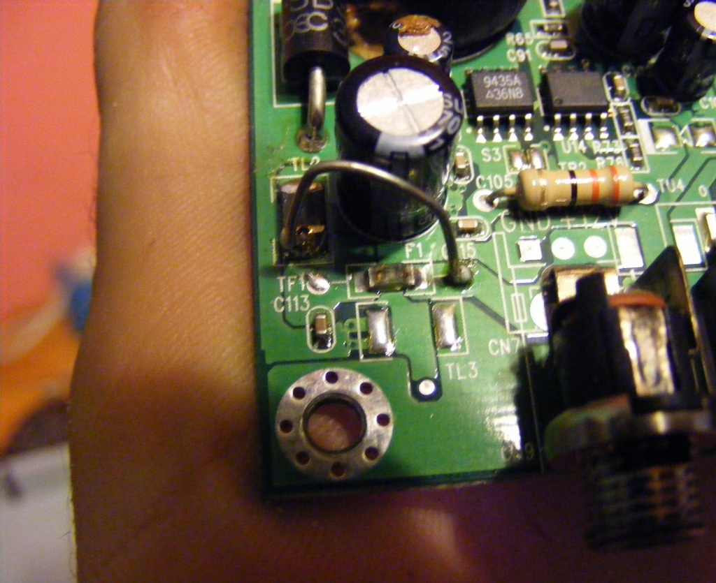 Az egy Biztosíték (F1), amely át van hidalva egy vezetékdarabbal.