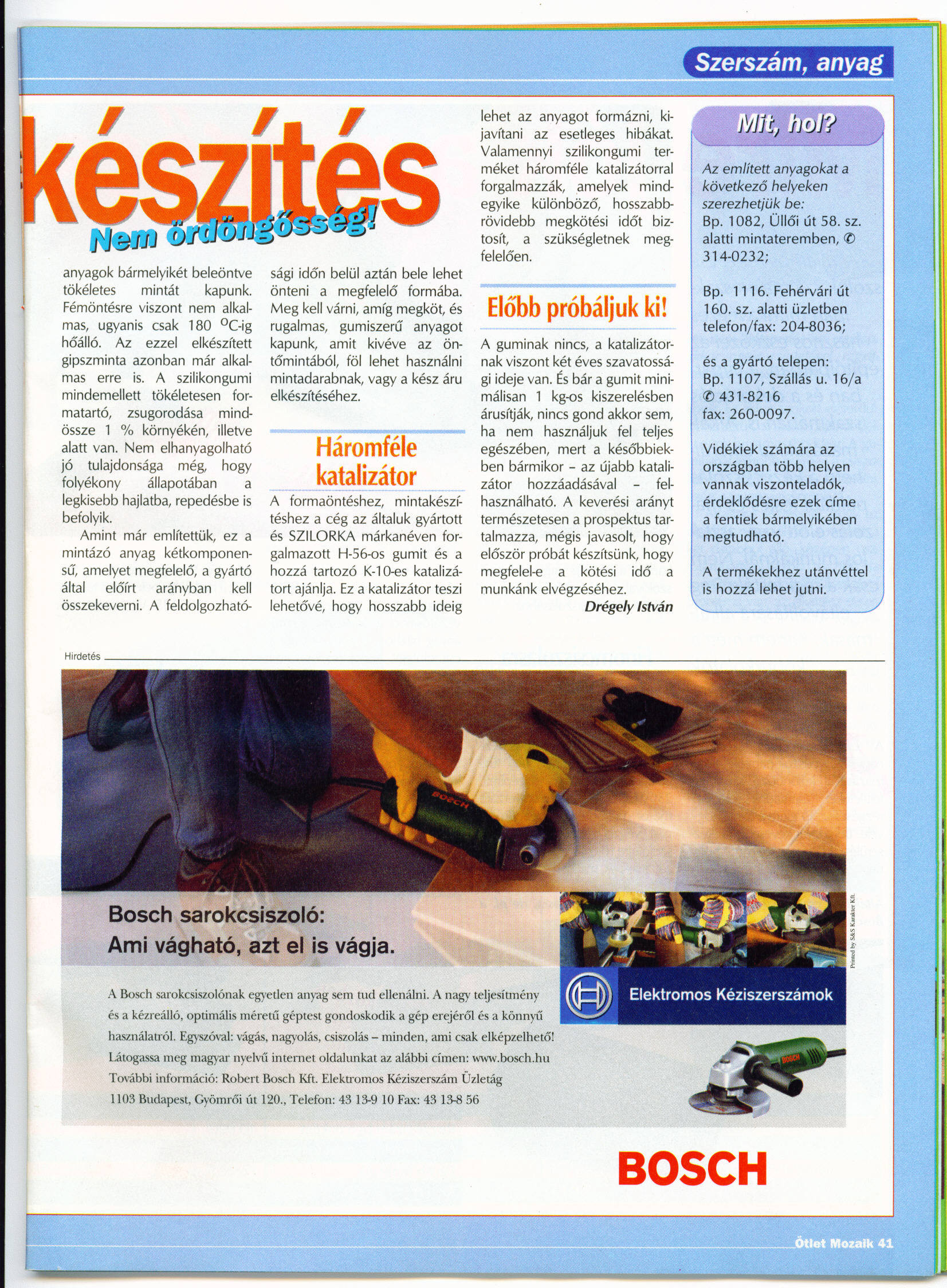 Egy ismerősöm műgyantából modellek burkolatát (vasúti kocsik, mozdonyok) öntötte ki. Sablonnak egy gumiszerű anyagot használt. A cikket (amiben erről a sablonról szó volt) sikerült felfedeznem egy újságban, beszkenneltem, majd délután felteszem ide, otthonról.