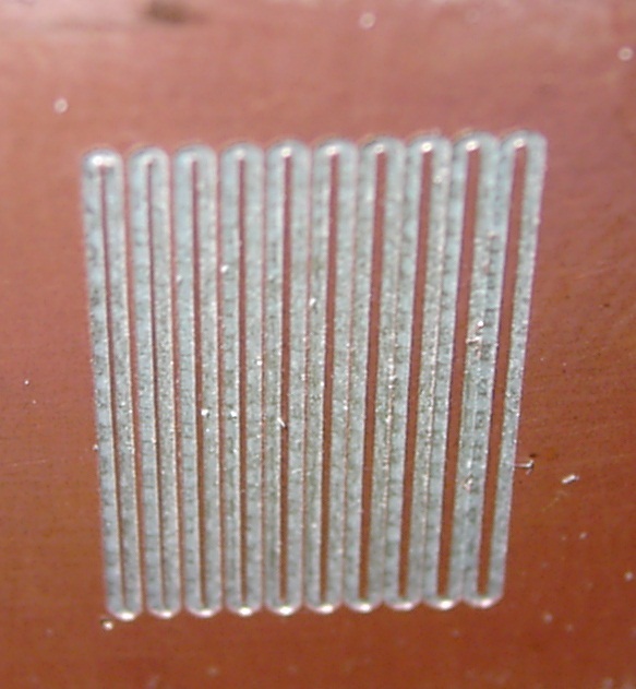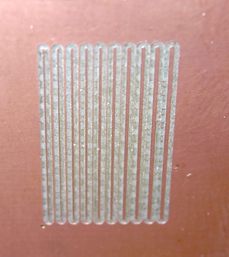 Megkértek, hogy csináljak egy teszt panelen vezetős sávokat, hogy milyen lenne a legvékonyabb vezetősáv.