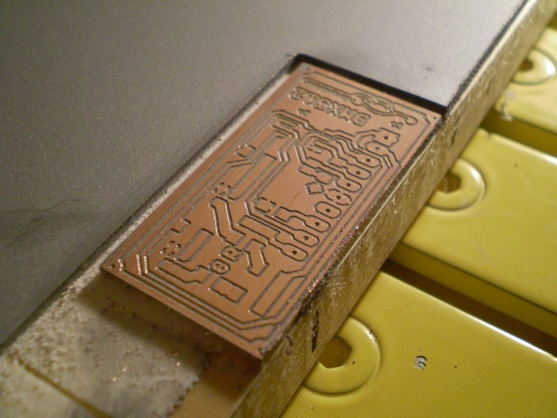 Köszönöm. Annyit csak kiegészítésképpen, hogy a DMX panel 2x4cm. Ez nyilván nem derült ki a képekből, de itt már nagyon fontos a gép pontossága. Egy erősítő, vagy táppanelnél nem gond ha van egy kis pontatlanság, de ez egy kis méretű SMD-s panel ahol például az ellenállás lábak között is megy vezetősáv. Ezek nyilván prototípusok, a végleges változatok már kémiai eljárással készülnek. Igaz, hogy a pwm szabályzóm panelje 1db-os volt és tökéletesen megfelel, de egy labortáp is simán tud így készülni, vagy éppen egy Quad 405 panel