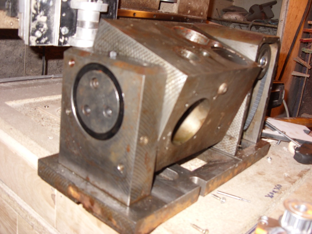 Új gépem egyik másik alkatrésze. Ezt kaptam melóhelyről. 5. tengely volt, sose lesz már 5. tengely. A nagy vasra ma kerüt egy tokmány, de még hol a vége? Beállítás az nem lesz két perc. Most járok 8 század ütésnél, ezt le kellene vinnem pár századra mondjuk 300 mm re a tokmánytól. Egy kolléga vezérlője hajtja majd, ez jó cucc, amúgy 10 fordulat percre képes kb.