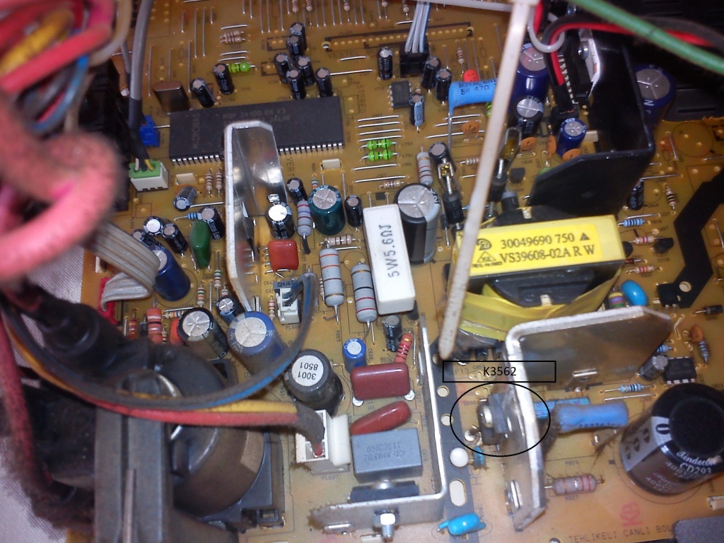 Ez azt jelenti, nem nagy a baj, - a sorvégtranzisztor működik, - zárlatos az eltérítő tekercs ami a képcsövön van, - "elképzelhető, hogy páradús levegőben lett a gép használva," és beégett a tekercs ami beterheli a sorvégfokozatot.