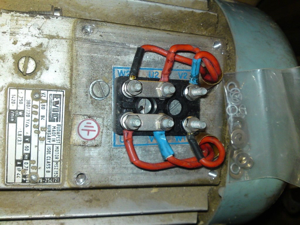 Három fázis esetén ezt a motort csillagba kell kötni, egy fázis esetén pedig deltába.