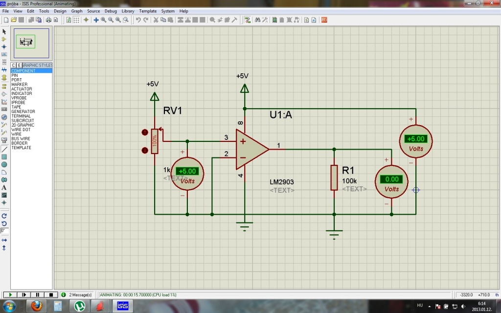 Már maga a komparátor kapcsolásom se akar működni natúrban. Beillesztek egy 2903-at, a két bemenetére adok input 100mV-ot és a tápfeszültség 5V de a kimenet csak! visszacsatolás esetén vált, de akkor is 0,2V-ra. Egy nullkomparátort szerettem volna összehozni, de úgy látszik, segítség nélkül nem megy.