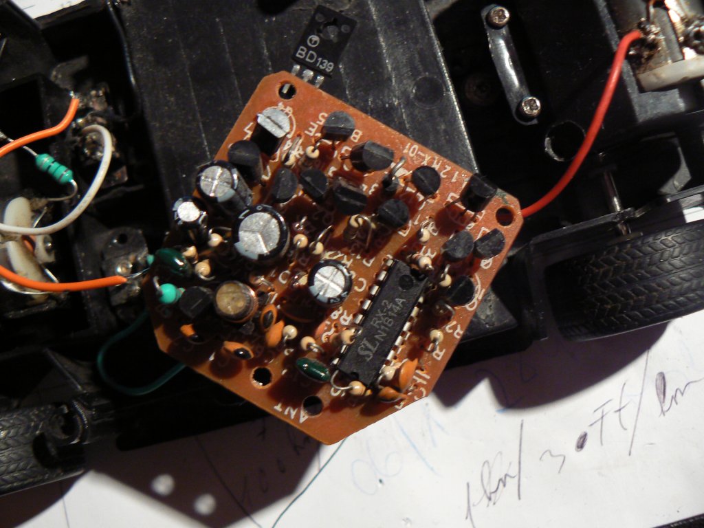 Megoldódott közben a probléma, az akku volt túlzottan lemerülve. Viszont eredeti állapotban ilyenkor sem ment szaggatottan az autó, csak lassan. Úgy gondolkodtam, hogy ha hagyományos izzó helyett/mellet LED diódát alkalmazok (330 Ohm-mal) az semmiképp nem lesz jó (esetleg valamivel bővíteni kell a kapcsolást), valószínűleg gyárilag ezért sem használtak LED-et. Nos, nem lett igazam. Teljesen feltöltöttem az akkut (4.8V) és jó lett. Talán annyi marad a különbség, hogy ha merül az akksi, megmarad a szaggatás...
