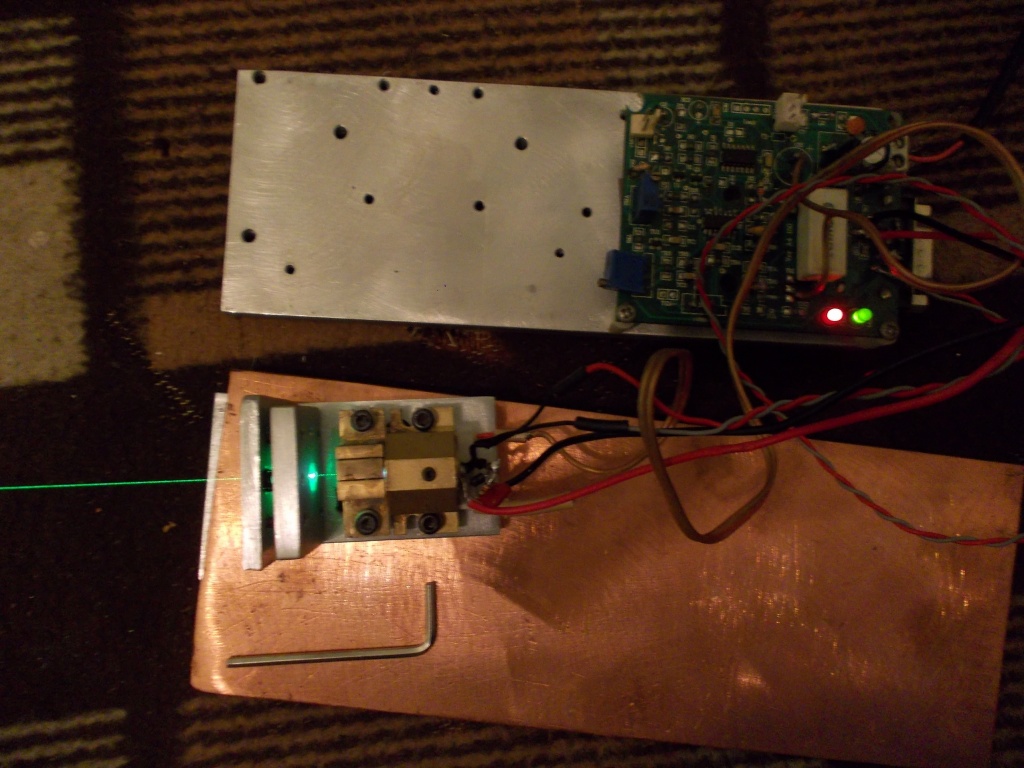 A moddingolt turbó DPSS-em tesztelgetés fejlesztés alatt még 3W pumpával