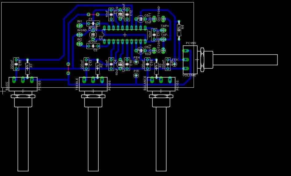 Sziasztok! Erre a végfokra szeretném rávinni a LM1036 - ra épített hangszín szabályzót. Az IC 8-as, 13-as kimenetén milyen kondit használjak. Köszi!