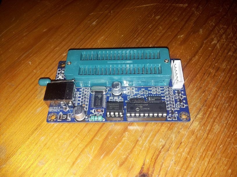 Kiegészítés: Az általad vett kártya valószínűleg a kitsrus.com K150 programozójának egy koppintása. Ami szembetűnő különbség: a fenti címen található K150 FTDI USB-UART protokol konvertert tartalmaz, az "olcsó kártya" pedig PL2303HX-et. Ezért más driver kell hozzá. A PIC16F628A-ban lévő firmware és az égetőprogram elvileg lehet ugyanaz, mint a K150-höz való.
