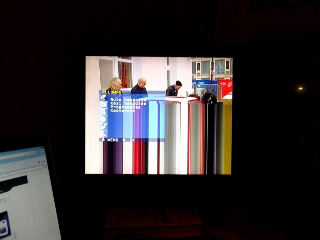 Mikor bekapcsolom először egyáltalán nincs kép. Aztán bejön a kép, de először még csak úgy, hogy nagyon rebeg és megakad, aztán megint rebeg és újra megakad. Néha pedig megakad és egyre fehéredik kifelé, aztán megint visszajön. És kb 20-30 perc múlva már bejön teljesen a kép, de ugrál fel-le, úgy, hogy a teljes kép teteje az benne van a kijelzőben, de az alja az nagyon ugrál és az nem is látszik a kijelzőn, csak mikor néha annyira felugrik.