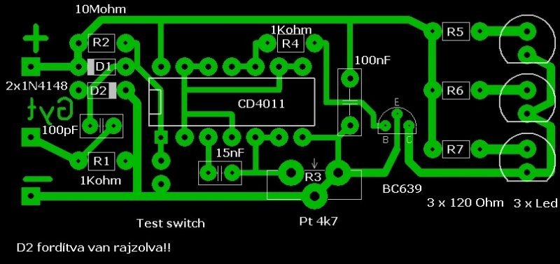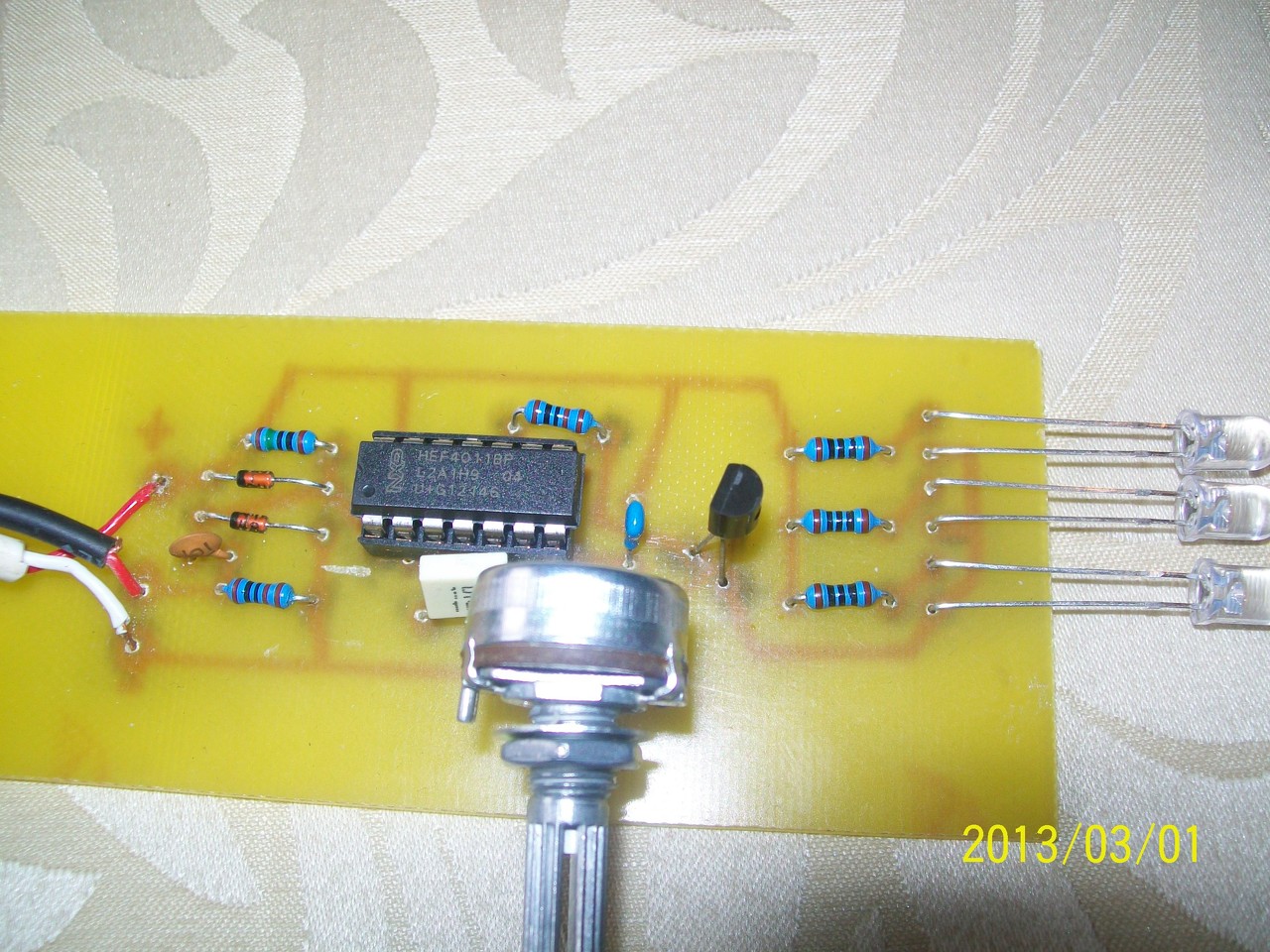 Szia. 3db nagyfényű ledet használtam. VAn a 4011 IC-s kapcsolás. Az jó lehet?