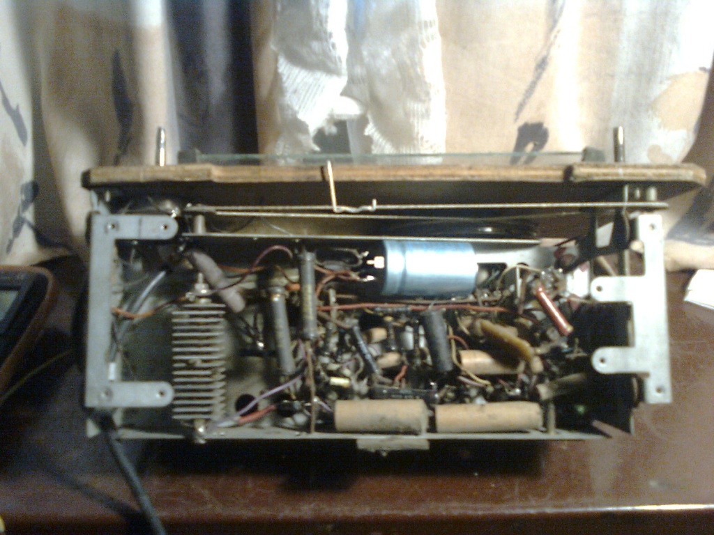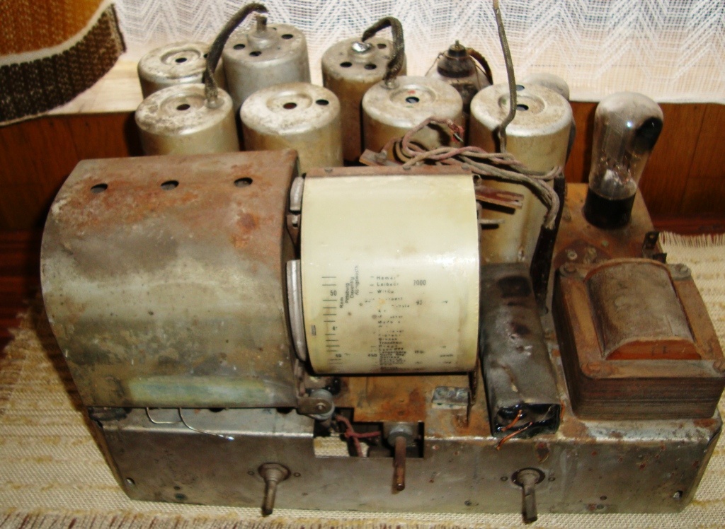 Lorenz felújítás. Teljes száradás után visszataktam a leszedett alkatrészeket, valamint hidegen, még bekapcsolás előtt megpróbáltam kimérni az esetleges hibás cuccokat, legalább is amiről sejtettem, hogy rossz. Két csatló. és három hidegítő kondi egyből kilőve, valamint a munkaellenállások közül majd az összes. Hiába a 78 év nem múlik el nyomtalanul. És persze a kötelezően cserélendő kondik, a hálózaton, meg az antennakörben. A további kihagyások elkerülésére szétszedtem a pot métert, és áthelyeztem arrébb a csuszkát. Ezután bekapcsoltam. Elsőre szólt a hangfreki, a pot méterről, csak a végfok munkapontját kellett kicsit állítani. Demodulátor diódáról meg semmi. Hosszas keresgélés után találtam a diódával sorbakötve egy szűrő tekercset, (nem szokványos alkatrész) ami szakad volt. Újratekerés után tulajdonképpen megszólalt, csak nagyon halkan. Szét kellett még szedni a szakadt mod. kört (alu serleg alatt beszegecselve) meg az első KF-et amibe rossz volt a kondi.