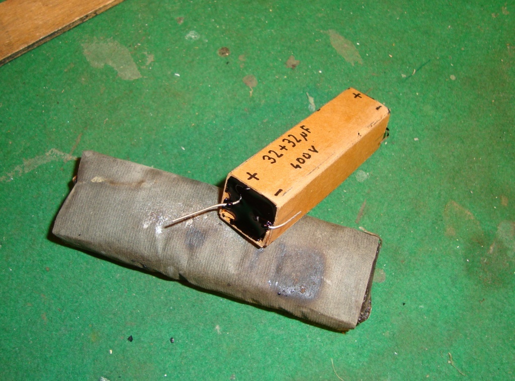 Az eredetibb állapot kedvéért a rádiómhoz gyártottam réginek kinéző kondikat, kevésbé tűnnek idegennek, mint az 5x5x2-es fóliakondik