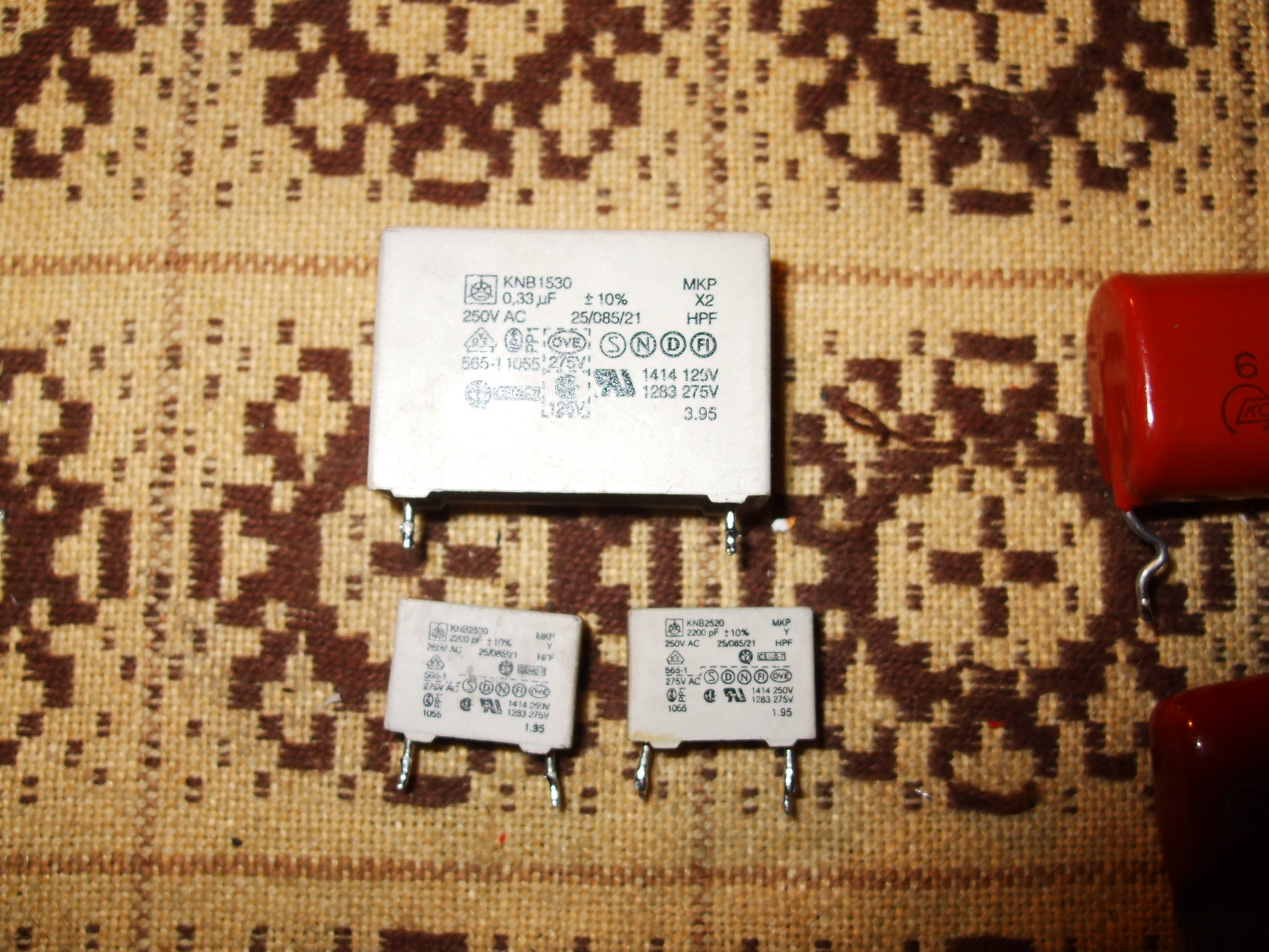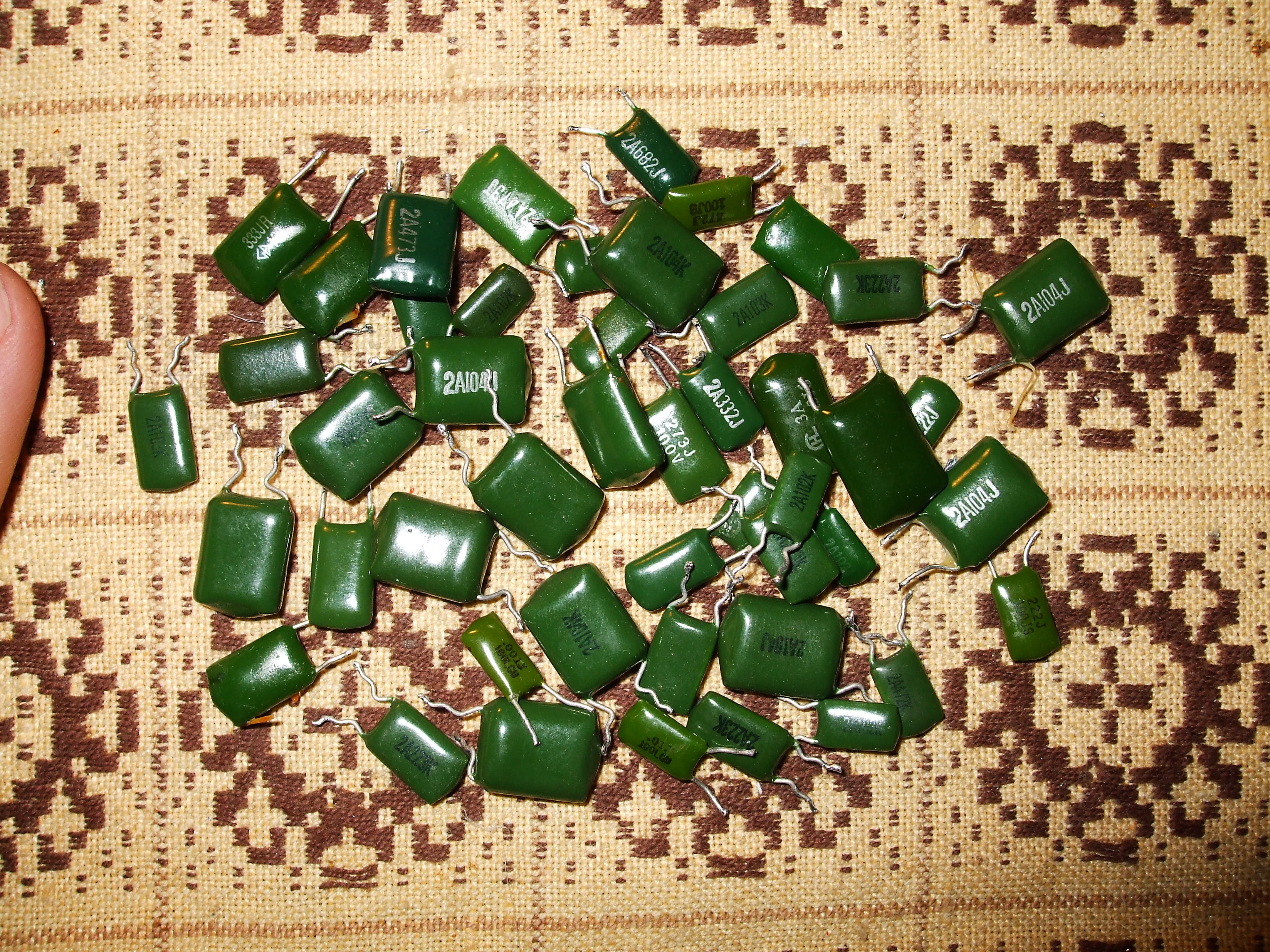A kis fehéres-vajszínű téglatest alakúak pedig sorban 0,22 uF; 0,47 uF; 0,1 µF értékűek és 100 voltosak, kivéve a középső oszlop legalsó tagját, az 250 voltot visel el maximálisan.