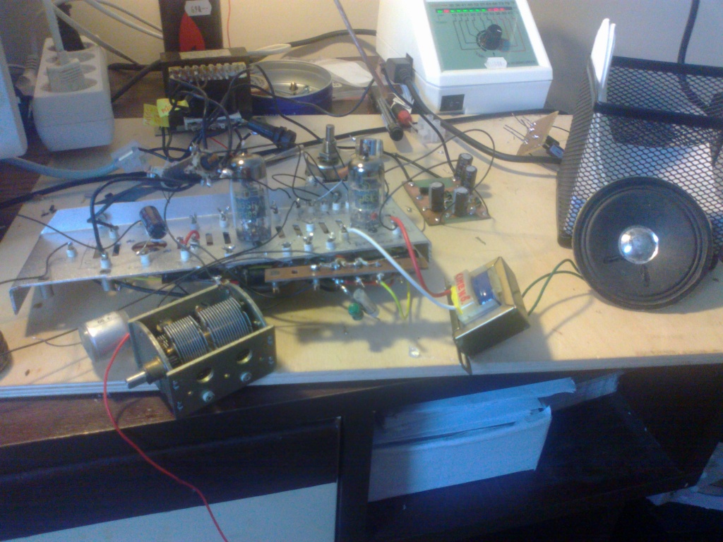Kivételesen nem amatőr kérdéseimmel fárasztom a kedves Fórumtársakat. Szeretném bemutatni a 2 csöves visszacsatolt egyenesvevőmet. Csak bontott alkatrészek találhatóak benne, egy EF183 és egy PCF82 csővel dolgozik. Az anódfeszültséget 15 Voltból feszültségnégyszerezéssel állítja elő. A képeken látszanak a szedett-vedett alkatrészek, néhány ellenállás értéket csak sorbakapcsolással tudtam megoldani.Ezúton is szeretném megköszönni az alkatrészeket Hajas Mihálynak! Működés közben: http://www.youtube.com/watch?v=YGB_V2SERqQ&feature=youtu.be