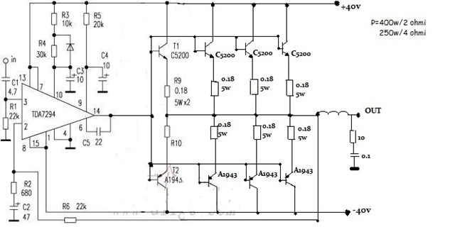 Szia! A TDA7294 14. láb és a tranzisztoros kimenet közé pár ohm-os ellenállást szoktak tenni, hogy csillapítsák a keresztezési torzítást.