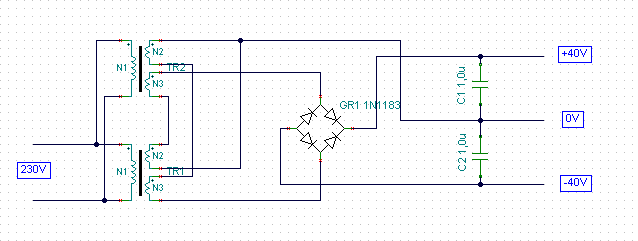 Hát mivel kiszúrtam, hogy ez igazából +-20v egyenírányítva 300w toroid. Egy labortápból volt kiszedve és az írás szerint 16A maxot bír. Én ebből 600W ot szeretnék +-40ra. Gondolom, ha sorba kötöm akkor működik így, de mivel nem vagyok nagy szakértője a véleményeteket kérném, hogy +- hogy lehet sorba kötni...