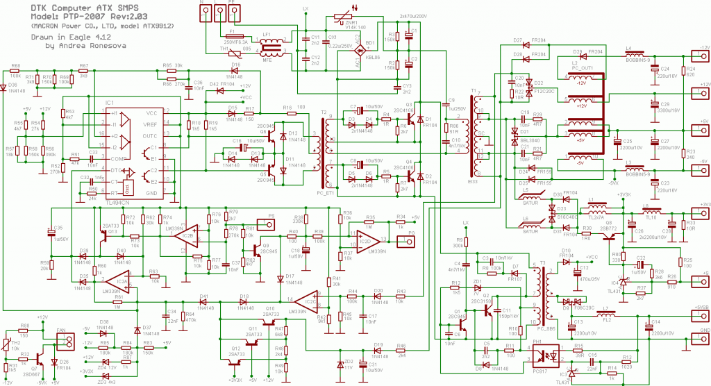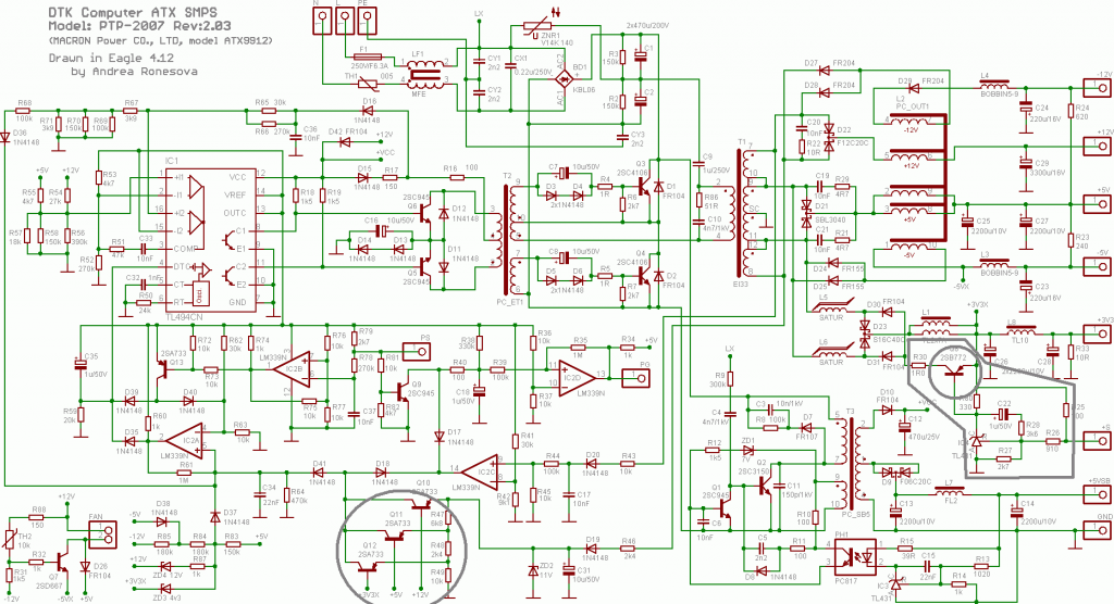 Igaz hogy a ptp- 2007-esé de ugy fedeztem fel hogy 1-2 alkatrész más hogy birja a 300w-ot de a kapcsolása ugyanaz. Idézet: „A 2 kis elkót kicseréltem a többit pedig lecsipogtattam és jónak tűnnek.” Én személy szerint válogatás nélkül cseréltem volna az összes elkót. Ahol egy elkó elpusztul, ott elég meleg van ahhoz, hogy a szomszédjai se érezzék jól magukat.