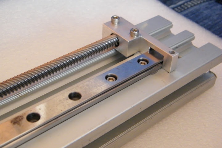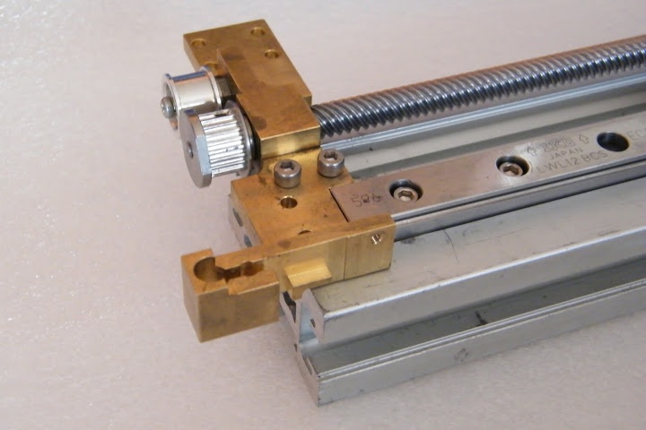 Az a hézagló lemez (0,2mm) azért van az orsó anya és a kocsi között, mert valami difi volt vízszintben (síkban) kettőjük között. Oldal irányban nem hajlik, de le-fel igen. Ismétlési próbán átment 10-ből 10-szer. Elvileg lesz rá egy finom hajtóműves léptető is, és kész is a hobby tengely.