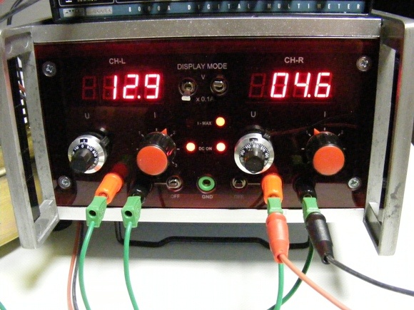 Elektronika indítása a szokásos lépéseken keresztül történt. Semmi probléma nem merült fel, köszönhetően a gondos tervezésnek. U-Max. és I-Max. beállítása után feszültségmérőt kalibráltam. Nekem ez tetszett jobban. Átkapcsolva árammérésre jelentéktelen volt az eltérés az ellenőrző műszerhez képest. Sajnos a két csatorna között eltérés mutatkozott a LED visszajelzésben, ha minimumra tekertem az áram limitet. IC csere után mindkét csatorna egyforma lett, terhelés nélkül leszabályozott áramnál visszajelző LED világit. Megkapta a műterhelést mind a két oldalon (8 Ω), no meg egy hőmérőt és elmentem aludni. Egész éjszakás járatás után 50 °C volt az állandósult hőmérséklet a hűtőbordán. Ez megfelelő. Most már használatra kész, mindenkinek ajánlom megépítésre. Ha kicsit hosszó lett, elnézést.