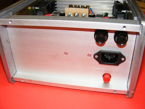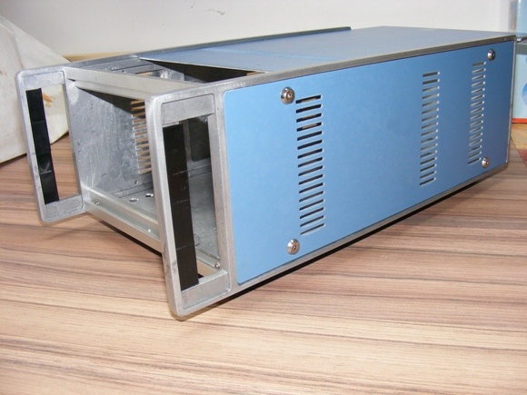 A hátfalat kicsit kellett átalakítani, hogy megfeleljen a célnak. Az eloxálást nem szerettem volna megsérteni, ezért látszik halványan a régi szitázott felirat, pedig rengeteg energiát fektettem az oldószeres lemosásba. Egyszer majd kap szép címkéket, azok eltakarják.